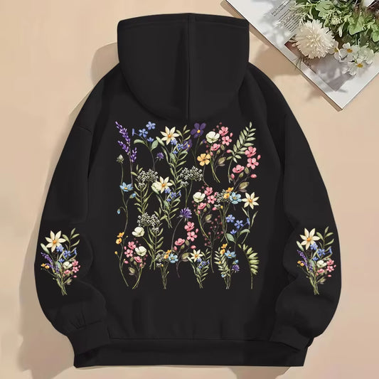 Women'S Y2K Hoodies Vintage Wild Flower Print Loose Sweatshirt Long Sleeve Pocket Women Pullover Boho Plant Style Flower Hoody