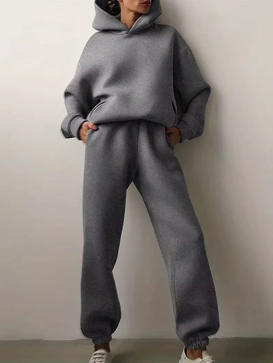 Plus Size Autumn Tracksuits Women Hoodies Set Casual Sweatpants Solid Warm Suits Winter Pullover Sweatshirts Pants 2 Piece Set